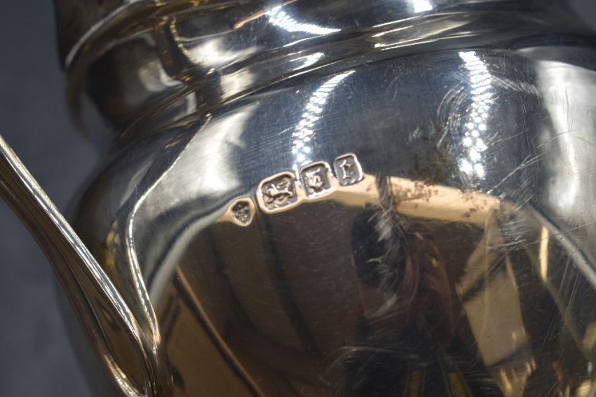 An impressive George V silver jug, of traditional form having a moulded rim and generous spout opposed by a moulded handle, raised on a circular moulded foot, marks for London 1920, maker Edward Barnard & Sons Ltd, 14.5cm, 436g
