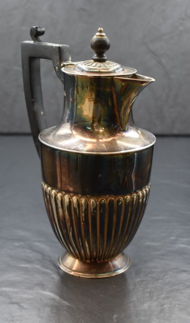 A Victorian silver coffee pot, of circular form having a narrow spout opposed by an angular handle with a half gadrooned body, raised on a circular foot, marks for Sheffield 1898, maker Atkin Brothers, 20cm, 327g