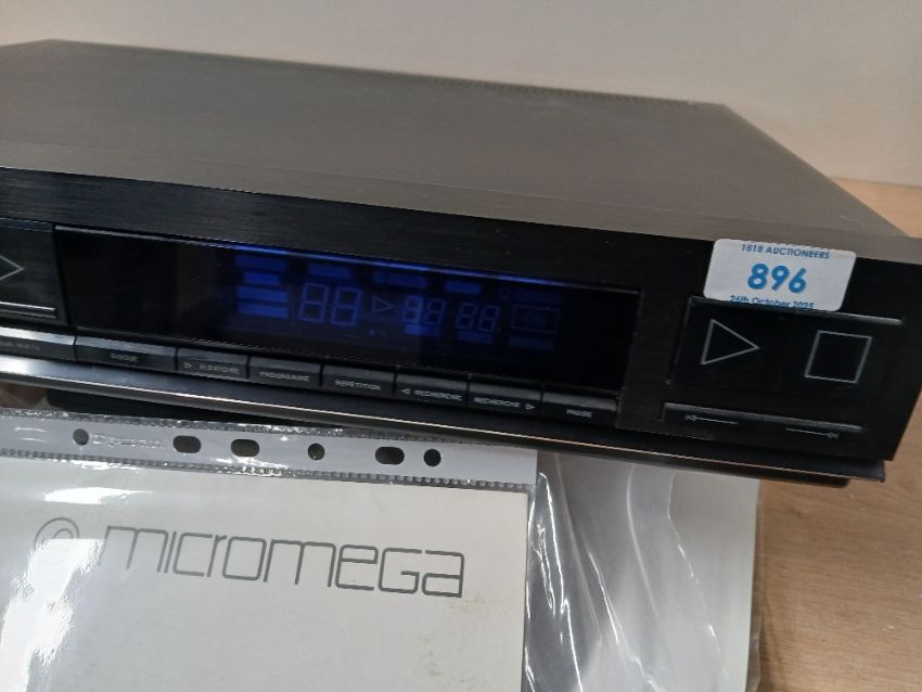 A Micromega Optic BS CD Player - quite a rare item in good working order and cosmetic condition - has Philips CDM 4/19 swing arm laser unit and DAC chips - comes with original remote and operating instructions in French