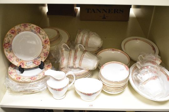 A large late 20th-century Royal Doulton fine bone china 'Darjeeling' tea set, featuring repetitive floral motifs in blushed pinks and pastel colours, with gilt rims, to include cups and saucers, bowls, a jug, a sugar bowl, and more, all marked to the base, (approximately 80 pieces).