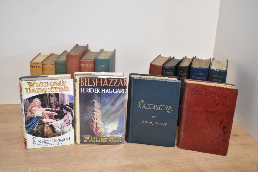 Literature. H. Rider Haggard. A selection of works. Includes first editions of the following: Pearl-Maiden (1903); Cleopatra (1889); Lysbeth (1901); Swallow (1899); King Soloman's Mines (1886); Queen Sheba's Ring (1910); Yellow God (1909); Belshazzar (1930); etc.