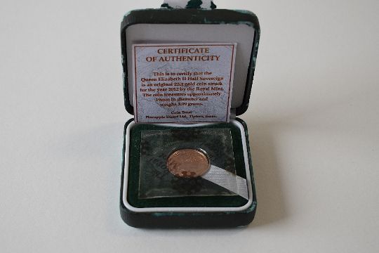 An Elizabeth II 2012 Royal Mint BU Gold Half Sovereign, Rev George And Dragon, 3.99 Grams, Rev Paul Day, Encapsulated In Presentation Box And Certificate.