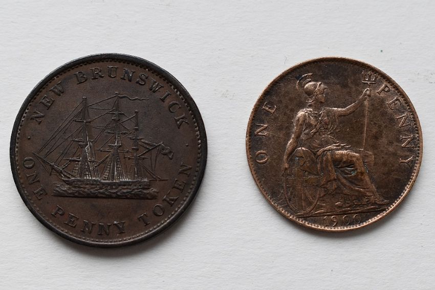 19th & 20th Century Pennies, Halfpennies And Farthings Including An Exceptional Queen Victoria 1900 Old Head Penny (slight Dint On Edge) And A 1843 New Brunswick Queen Victoria One Penny Token. Elizabeth II Sixpences x6, Brass-Nickel Threepences x4, Eire Shilling 1968, Eire Threepence 1940 and Eire Pennies 1925, 1942, 1971 (55)