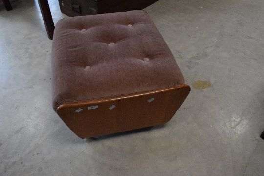 A vintage stylised teak foot stool having dralon upholstery , width approx. 62cm