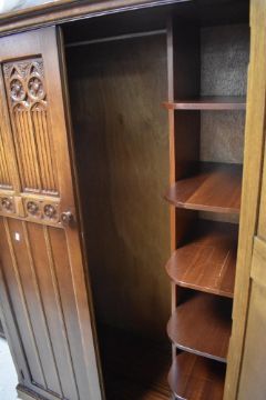 A reproduction oak wardrobe in the Priory style, approx. dimensions H169 W106 D57