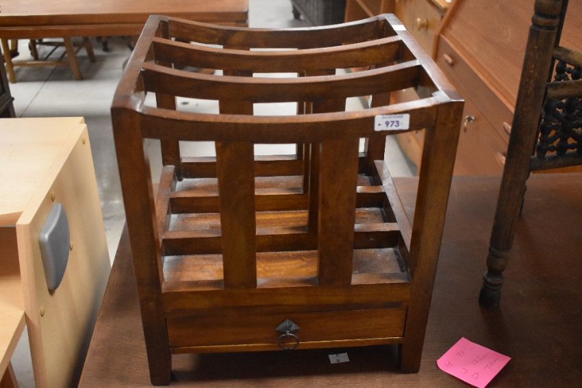 A modern hardwood Canterbury style magazine rack