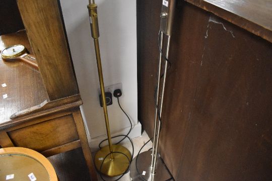 Two modern standard reading/uplighter lamps, in chrome and brass finishes