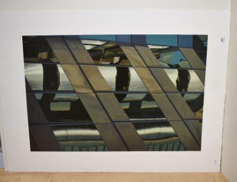 After Brendan Neiland (British b.1941) Screen print 'Lloyd's' a study of The Lloyd's building in London with layers of reflection from surrounding buildings, titled in pencil to margin lower centre signed to lower right, unframed 76cm x 50cm & 97cm x 71 overall.