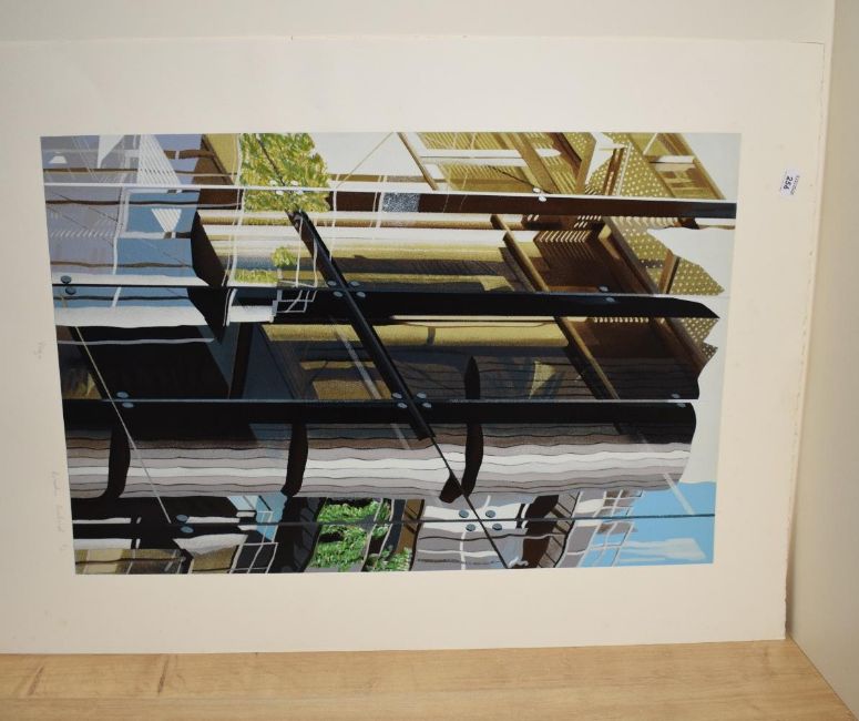 After Brendan Neiland (British b.1941) Screen print 'Plaza' a study of a glass building with layers of reflection from surrounding buildings, titled in pencil to margin lower centre signed and marked as artists proof to lower right, unframed 76cm x 50cm & 96.5cm x 70.5cm overall.