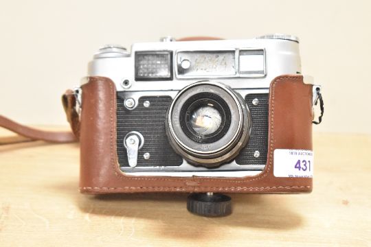 A FED-4 35mm rangefinder cameras, FED 52mm f2.8 lens and brown leather case and strap.