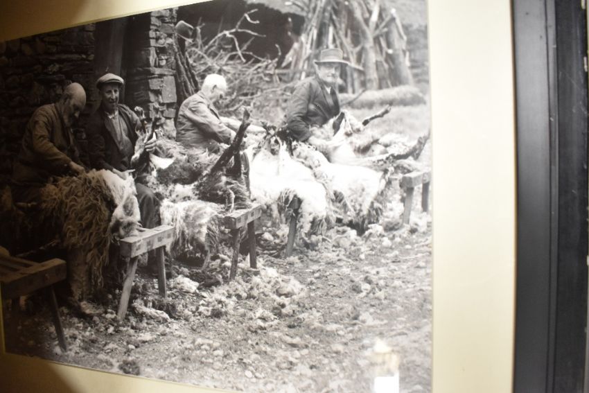 A pair of historical farming photographs in a simple black frame, mounted and glazed 54cm x 43.58cm sold with a pair of nautical pictures mounted framed and glazed 48cm x 36cm etc.