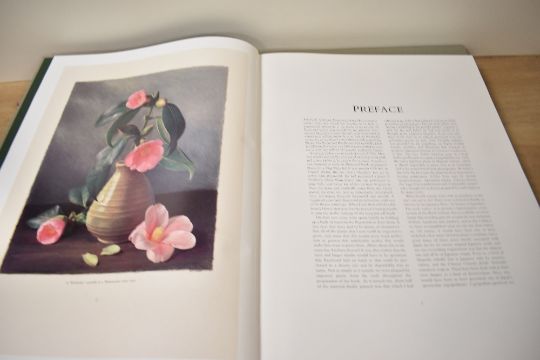A copy of Japonica Magnifica by Don Elick and Raymond Booth beautifully illustrated with a large selection of picture plates and kept within a dust cover 46cm x 34cm and two feather filled cushions.