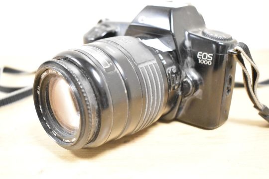 Canon EOS 1000 35mm film camera, with a Sigma Zoom 55-200mm f4-5.6 lens.