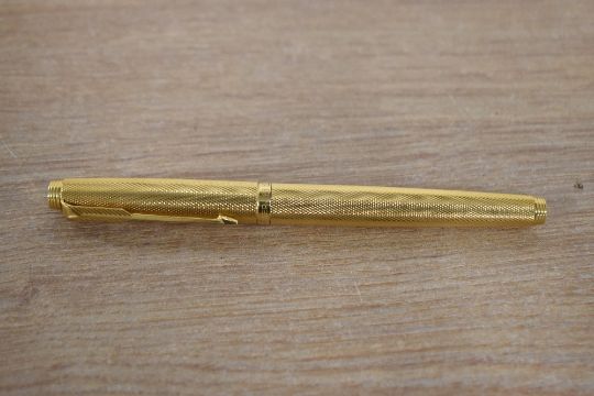 A Parker 75 converter fill fountain pen in gold Grain d'Orge pattern having Parker 585 France nib