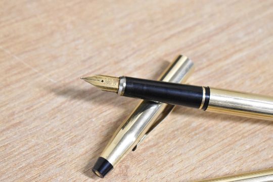 A boxed Cross Rolled Gold converter fill fountain pen, ballpoint pen and propelling pencil set