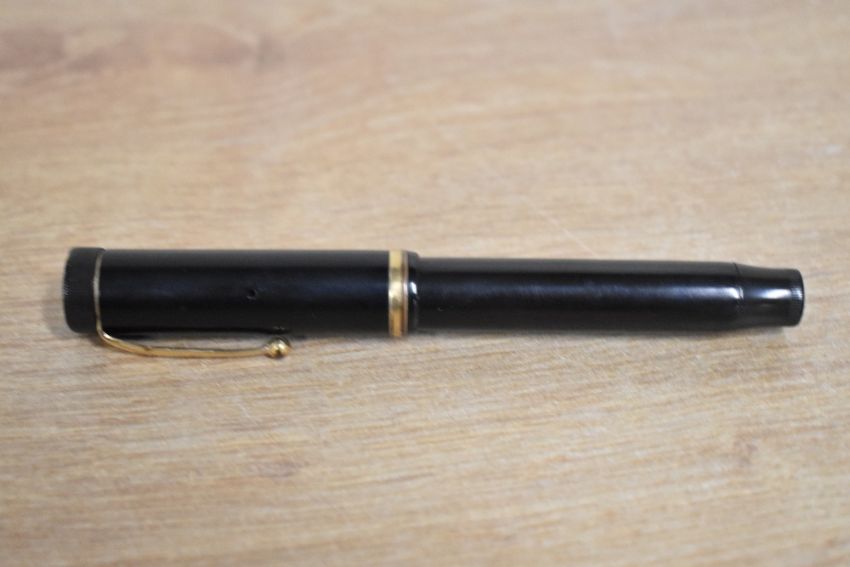 A Parker Duofold Senior button fill fountain pen in Black with single wide cap band Parker Duofold Pen P-C nib
