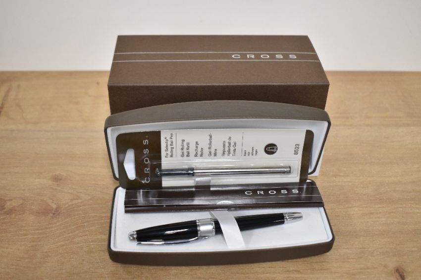 A boxed Cross Apogee rollerball in Black Star laque and chrome
