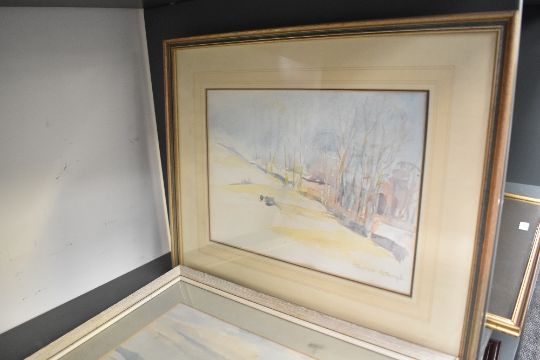A collection of 20th century watercolours, artist unknown, depicting coastal landscapes, four within moulded frames and one unframed.
