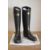 A pair of Hunter tall wellington boots in dark chocolate brown, rubber upper and grip sole, special edition featuring textured leather leg panel, brushed brass hardware and logo plate, size 7.