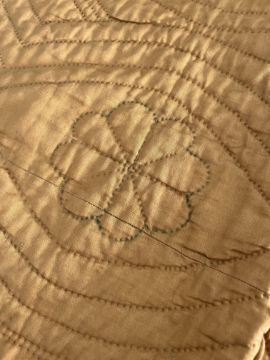 Some small stains and areas noticable on the gold side of the quilt, see photos.
