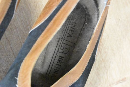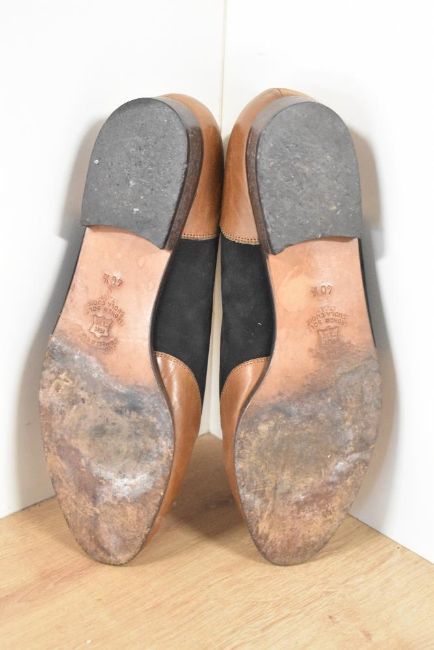 Two pairs of vintage leather brogues, in tan, black and brown mixed leathers, laced, sizes 40 and 40.5.