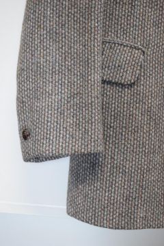 A vintage mens Dunn & Co. Harris Tweed jacket, in woven taupe, golden brown and cream 100% wool, measuring 20 inches across the back from pit to pit, in lovely condition without damage.