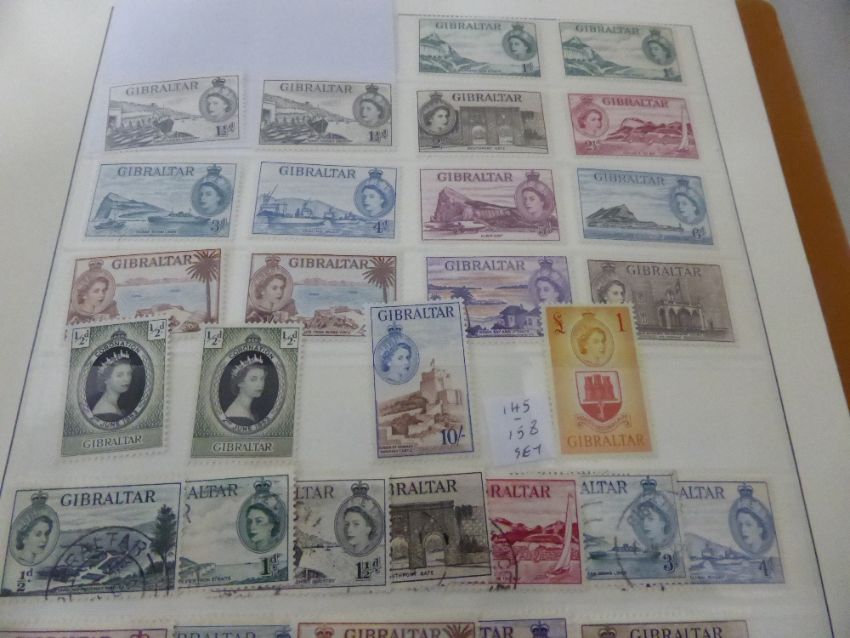 GIBRALTAR QVIC - QEII MINT & USED COLLECTION IN LINDNER ALBUM Fine Gib collection with very useful ranges of earlier Victoria, through to around the 1970's. Earlier part of collection is predominantly fine used, with plenty of sets, part sets including Bermuda opts, Spanish surcharges, EVII with values to Eight Shillings, George V sees values to £1 other commemorative issues including Silver Jubilee, George VI issues fine used, QEII set SG 145/58 mint, other fine used items from this series, SG 200-13 fine used set, and then further mint and used sets to the 1970's. Fine collection to fill those gaps, with plenty of better noted.
