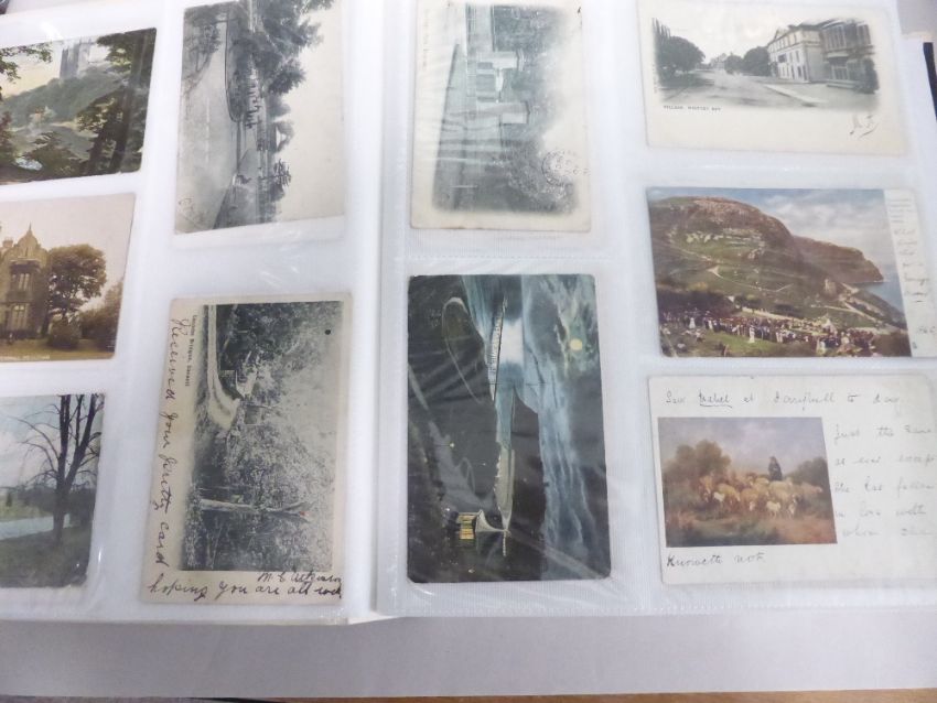 POSTCARDS NORTH EAST ENGLAND, STARS OF STAGE AND SOME WWI SILKS Album with in the region of apx 350 postcards, front half or so of album largely North East of England (odd other noted) including Hartlepool Durham, Darlington, Consett, Sunderland, Bishop Auckland, Holy Island etc. Then follows apx 180 postcards of Stars of the Stage, with many of the usual culprits, Edna May, the Dares but other less common noted. To rear 10 or so WWI silk cards. Viewing recommended.
