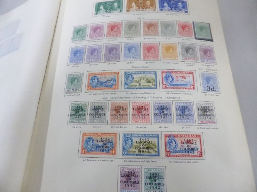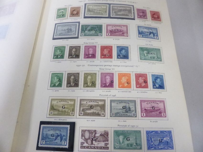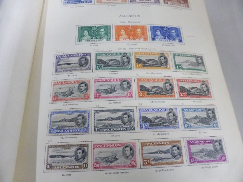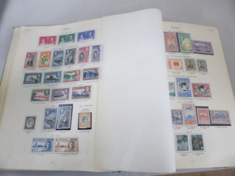 BRITISH COMMONWEALTH KING GEORGE VI STAMPS ALBUM NEAR COMPLETE - MINT Wonderful GVI collection from around the Empire, all housed in a Green SG stamp album (4th Edition) for all the Commonwealth Issues. Some wear noted to spine however the contents houses a much complete mint collection for the reigns of KEVIII and GVI. In some ways it would be easier to tell you whats not in this album! but we do see completeness throughout with odd gaps. In brief, Aden and states complete (no 10R Dhow) Antigua and Ascension complete, Australia missing 1948 1 1/2d green (no wmk), Bahamas complete, Bahawalpur, missing three officials otherwise complete, Bahrain and Barbados - complete. Basutoland, Bechuanaland, Bermuda all complete. Bhopal apx 1/2 complete. British Guiana, Solomon Islands, Honduras, Brunei all complete, Gaps in Bundi, Burma missing top three values of first issue10r, 15, 25r otherwise complete, Canada, Ceylon Cayman islands - all complete Gaps noted in the Indian States, Cook Islands mostly complete bar a couple of semi fiscal coat of arms opts. Complete to GB with odd GVI definitives not present Hong Kong largely complete, (no$10 green and violet) India mostly complete including beautiful 10R Ghandi MNH, KUT, Kuwait complete Kelantan sees a couple of the Chef Kelatans missing ($2 &5) complete to Negri Sembilan (except India States) Negri missing $5 green & brown Newfoundland, New Guinea both comlete, New Zealand sees a few gaps in the Semi fiscals, and odd other official, Nigeria etc complete to Pahang (two gaps noted) Perak sees gap on $5 green and red on emerald, Noted a couple of gaps on Sarawak the $5 and $10 BMA opts. Few gaps in South Africa in the pairs, and with the officials. Couple of the Camels missing in Sudan from 1936 issue and with the officials, then near complete. (bar a low value set from the British Virgin Islands) Again Indian states can be a bit thin on the ground throughout. For the most part collection very clean, much of the RSW 1948 is in mounts and unmounted mint, other items note as MNH, but largely collection is mounted mint. A fine and wonderful collection which has taken our vendor many years to put together. Album is STC £46,500+ based on 2022 pricing. Please inspect, viewing is strongly recommended.