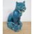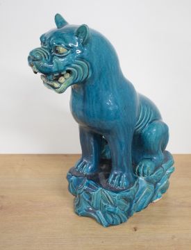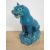 An unusual Chinese turquoise glazed pottery study of a large cat or panther, modelled seated with open-mouthed snarling expression, 40.5cm