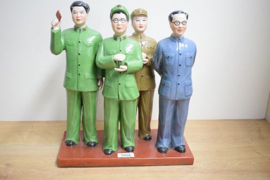 A Chinese Maoist/cultural revolution glazed bisque porcelain figure group, depicting four male and female supporters of Chairman Mao,