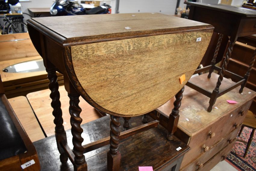 An early 20th Century oak twist gate leg table (af)