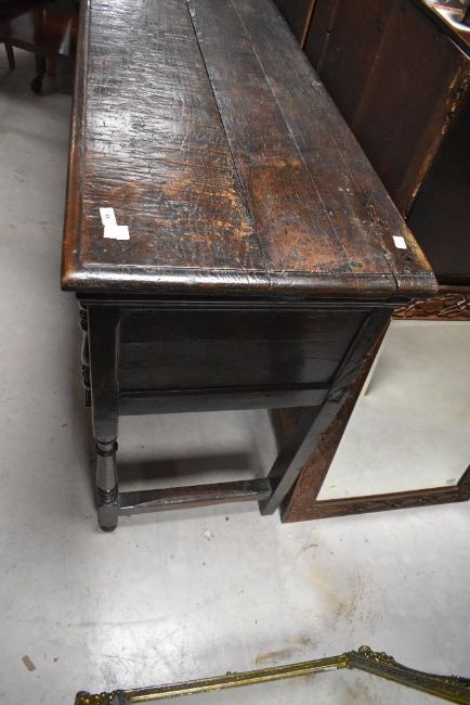 A period oak dresser base having three Jacobean style drawers on turned frame, dimensions approx. W150 H90 D50cm