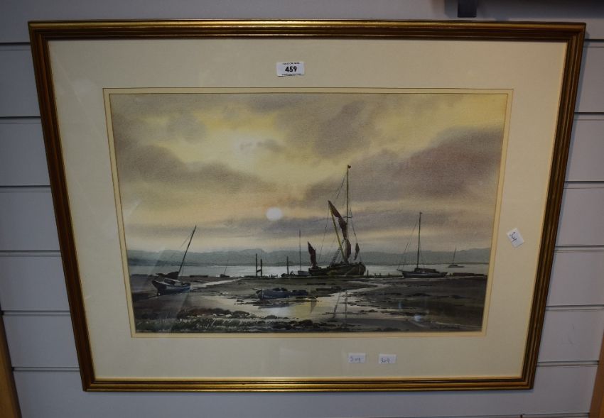 Local interest* Keith Burtonshaw (British 1930-2008) watercolour Evening Reflections, estuary scene, signed lower right entitled verso along with Beckstones Gallery label, within a stepped card mount and moulded gilt frame, under glass 35.5cm x 52cm & 57cm x 72cm