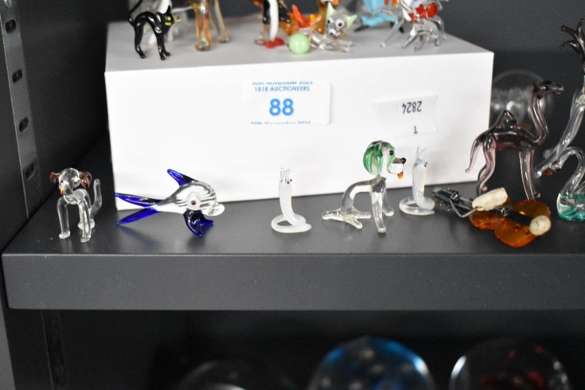 A quantity of 20th-century Murano-style Art Glass animal figurines, to include dogs, birds, elephants, fish and more, (approximately 21 pieces), condition consistent with age and use, some chipped tails.