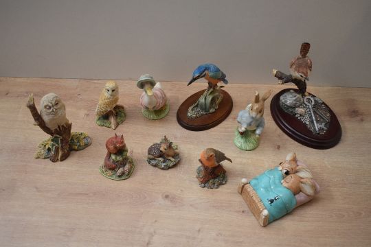 A group of seven Border Fine Arts animal studies to include 'Garderners Friend' model number SRE6 and 'Night Watch' model number BO197 all boxed, sold alongside a Beswick Pottery 'Jemima Puddleduck'.