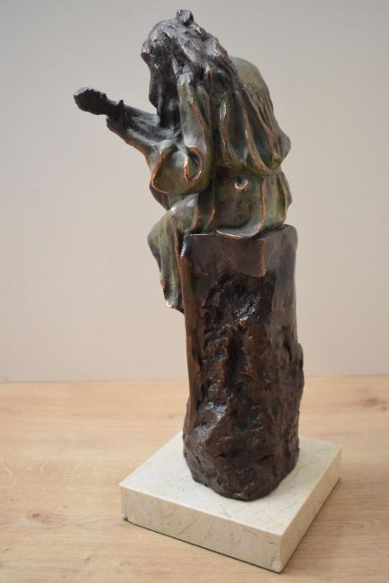 After Antoni Miro (1944-) a reproduction bronze style figurine depicting a guitar player raised on marble base, signature to reverse, measures 35cm tall.