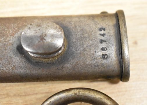 WWI German Butcher Bayonet Knife Model 1898/1905, 36.5cm steel single-edged fullered blade, ricasso stamped Alex Coppel above Solingen, spine having a Crown above W above date (15?), hooked steel pommel with non-working release button, ribbed wooden grips and rear-facing quillon, tarnished and some rusting throughout, no scabbard, 49.5cm overall. Sold together with German made Argentine Mauser Bayonet, clean 39.5cm steel single-edged fullered blade, ricasso stamped Modelo Argentino 1891 above National coat of arms and S4474 to one side and Weyersberg Kirschbaum & Co Solingen to the other, alloy grip with grooves, steel quillon with ring, steel pommel with working release catch, both brown coloured and with various marks including encircled RA, metal scabbard stamped S8742 and X within a D, encircled RA to ball, some dents, tarnish and rusting, 54cm overall.(2) Buyer must be aged 18 or over and show proof of identity, thank you.