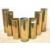 WW1 Trench Art brass shell cases two British 18-pounder 1915 and 1917 with fluted tops two 18-pounder 1916 and 1918 and three smaller two German with sectional lines and dated 1916 and 1917 the other German and stamped Dusseldorf Juli 1915 smallest 9cm diameter 22cm height largest 10cm diameter x 22cm height.(7)