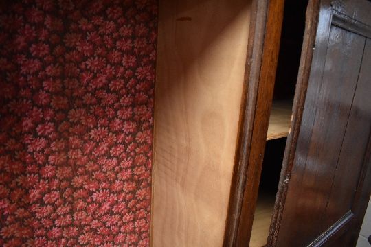 A 19th Century oak shallow panelled cupboard (some signs of historical worm to back) dimensions approx. H190 W150 D45cm