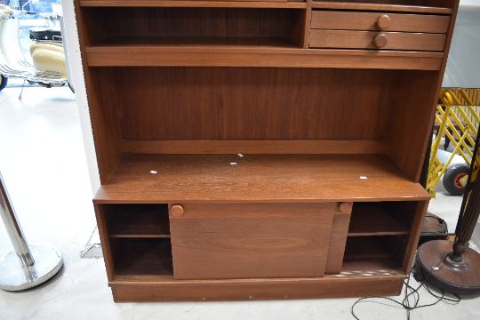 A vintage teak effect lounge unit, width approx. 127cm