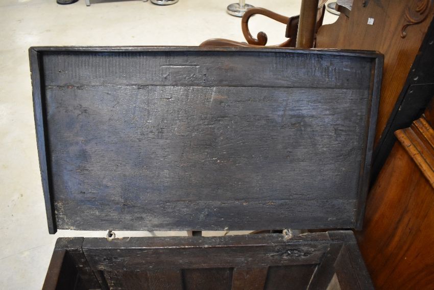 A lovely George III oak coffer of lovely proportions having three linen fold front panels, dimensions approx. W88 H60 D48cm