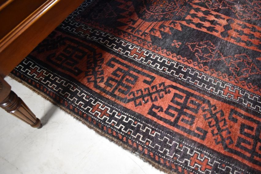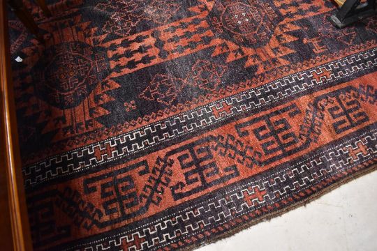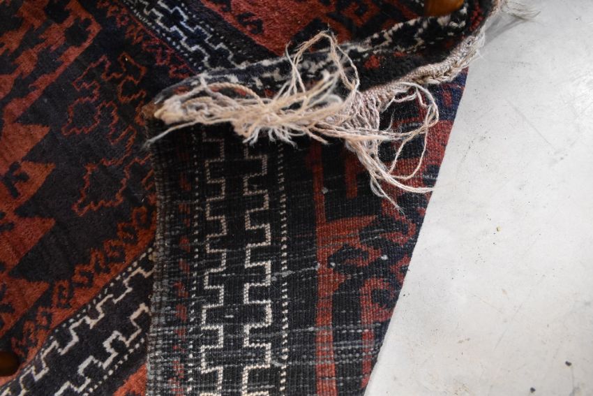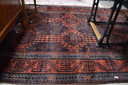 A Persian style carpet square having red ground, some general wear and light fraying but no obvious major faults or repair 173cm x 292cm approximatly