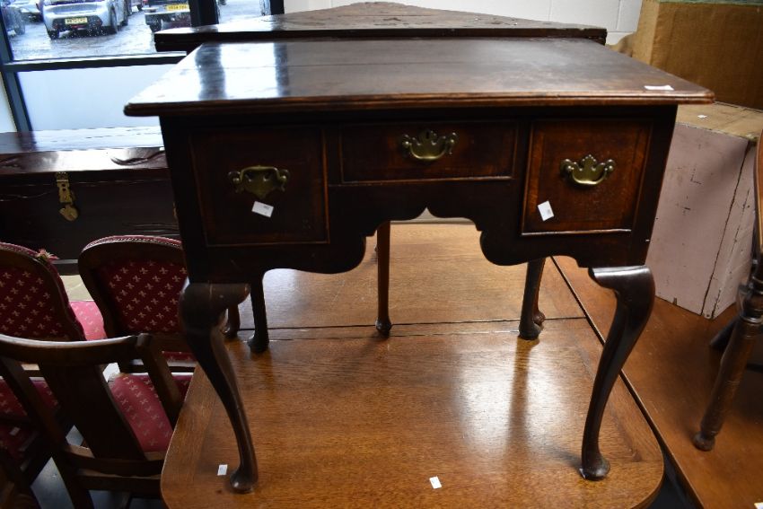 A Georgian oak lowboy of typical design , with brass drop handles to drawers over shaped apron and cabriole legs, width approx 75cm