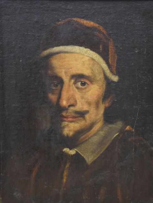 After Giovanni Maria Morandi (Italian 1622-1717) a 19th century Continental school oil on canvas laid down on wooden panel, portrait of Pope Clement IX, unsigned, within a moulded gilt frame 49cm x 38cm & 59cm x 47cm overall.