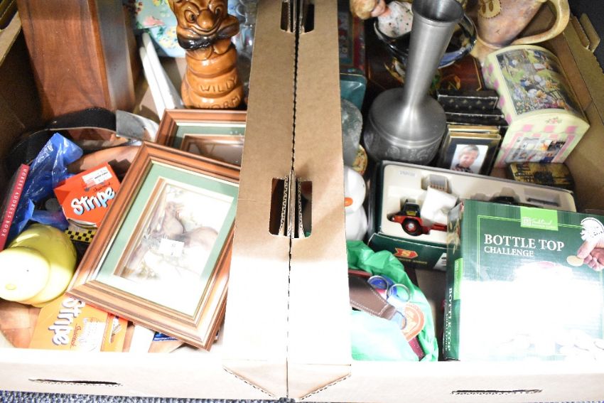 A miscellaneous selection of items in two cartons including a vintage Salter scale, a Corgi Eddie Stobbart die cast model in original box, a Kath Kidston style ladies handbag, a Wooden knife block and a selection of leather keyrings etc.