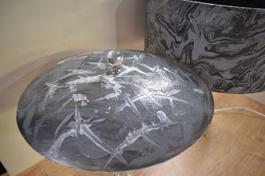 A modern table lamp having a grey marble effect shade and crystal and chrome base 50cm x 46cm sold along with another similar.
