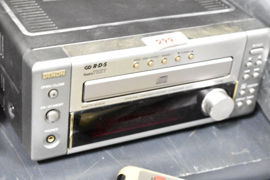 A Denon UD-M3 compact stereo CD, AM/FM receiver system with remote sold with a camera tripod.