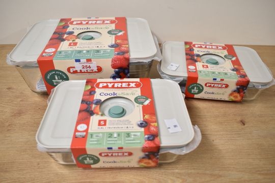 Three Pyrex Cook&Save oven to tableware dishes 1x2.6L and 2x0.8L.