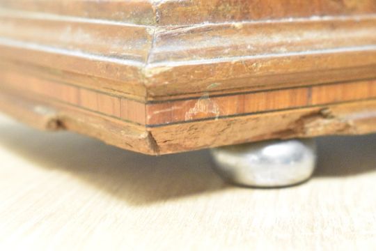 An early 20th-century French Art Deco La Pendastrava mantel clock, coin operated, time and strike movement and of Roman hours, 54cm, condition is consistent with age and use, including a large chip to the wood on the front left side, general surface wear, and additional chipping to the wooden corners.